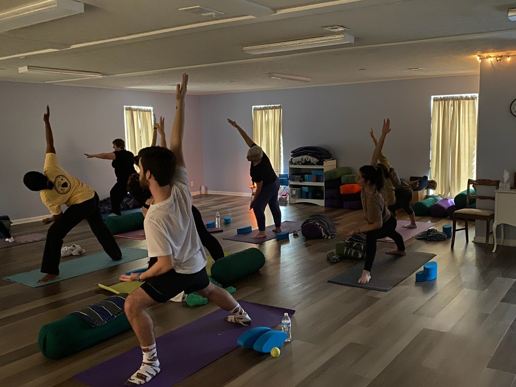 Expect to move with your breath from pose to pose in this flowing style yoga class.